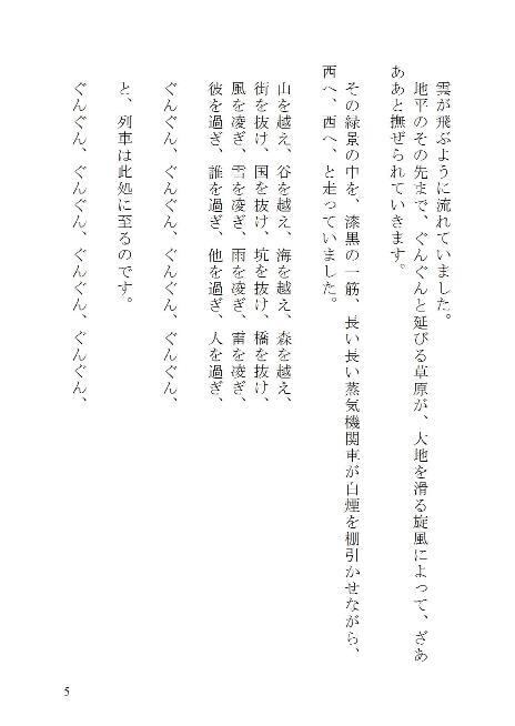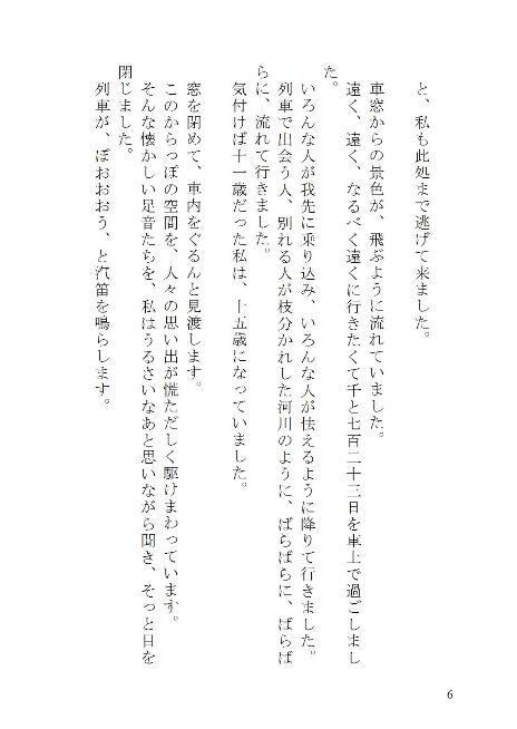 最果て行きの列車に乗って旅をする少女と途中で出会う人々のおはなし。同人小説作品。