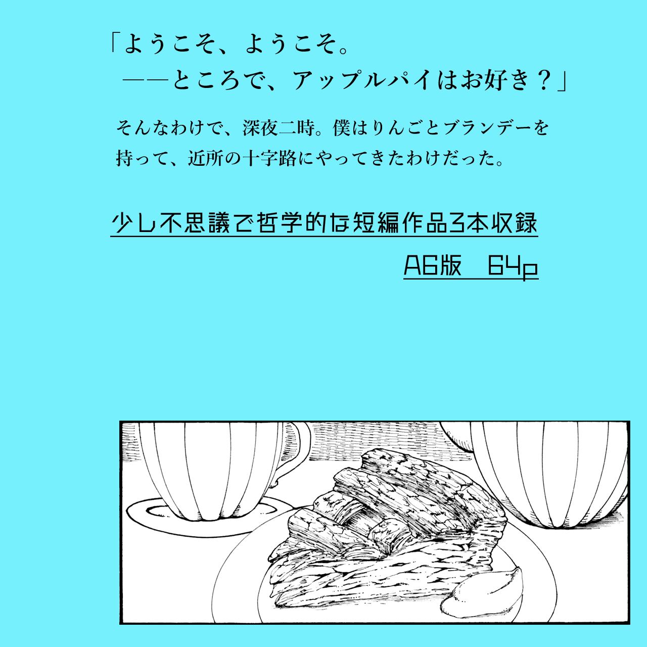 表題作「アップルパイナップルースト」他、少し不思議で哲学的な、3つの短い小説を収録した同人誌です。